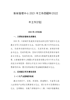 新城管理中心2021年工作总结和2022年工作计划.docx