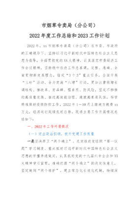 市烟草专卖局2022年度工作总结和2023工作计划.docx
