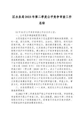 区水务局2023年第二季度公平竞争审查工作总结.docx