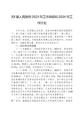 XX镇人民政府2023年工作总结和2024年工作计划.docx