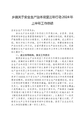 乡镇关于安全生产治本攻坚三年行动2024年上半年工作总结.docx