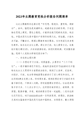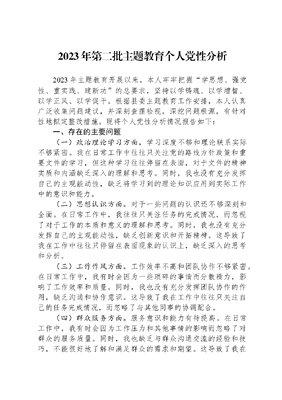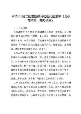 2023年第二批主题教育检视问题清单(含存在问题、整改措施).docx