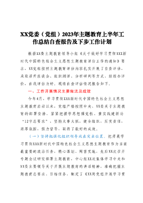 XX党委(党组)2023年主题教育上半年工作总结自查报告及下步工作计划.docx