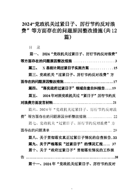 (12篇)“党政机关过紧日子、厉行节约反对浪费”等方面存在的问题原因整改措施.docx