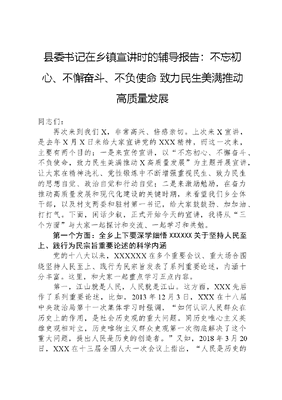 县委书记在乡镇宣讲时的辅导报告:不忘初心、不懈奋斗、不负使命致力民生美满推动高质量发展.docx