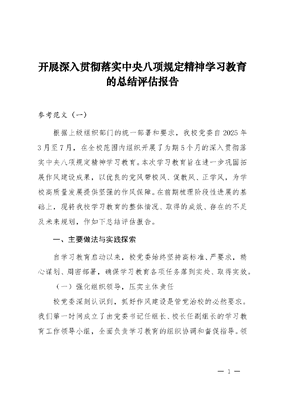 国企开展深入贯彻落实中央八项规定精神学习教育的总结评估报告(范文4篇).doc