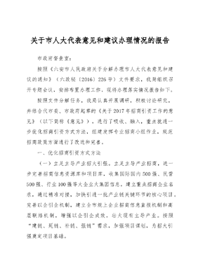 六安市人民政府关于市人大代表意见和建议办理情况的报告.docx