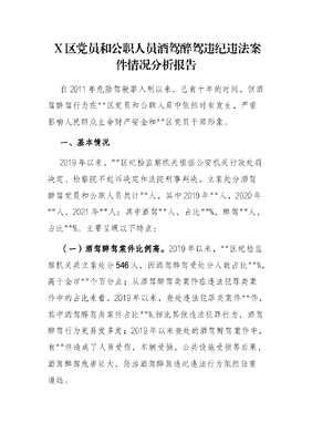 X区党员和公职人员酒驾醉驾违纪违法案件情况分析报告.docx