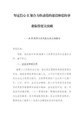 坚定信心 汇聚合力 推动党的建设和党的事业取得更大突破——在XX镇第X次代表大会上的报告.docx
