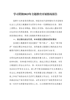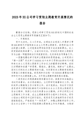 2023年XX公司学习贯彻主题教育开展情况的报告.docx