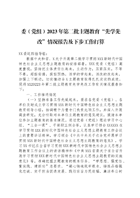 委(党组)2023年第二批主题教育“先学先改”情况报告及下步工作打算.docx