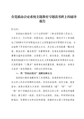 在党政办公室系统主题教育专题读书班上的辅导报告.docx