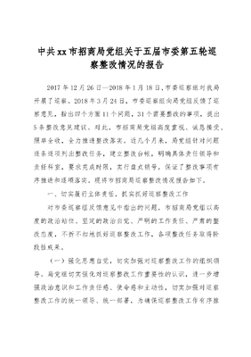 中共xx市招商局党组关于五届市委第五轮巡察整改情况的报告.docx