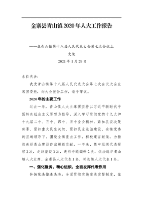 金寨县青山镇2020年人大工作报告——在青山镇第十八届人民代表大会第七次会议上.docx