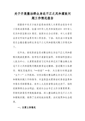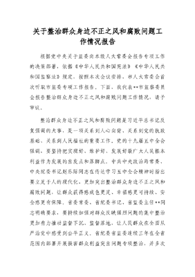 关于整治群众身边不正之风和腐败问题工作情况报告.docx