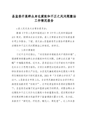 县监委开展群众身边腐败和不正之风问题整治工作情况报告.docx