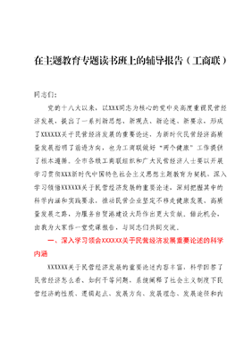在主题教育专题读书班上的辅导报告(工商联).docx