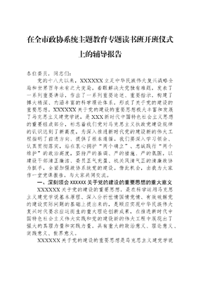 在全市政协系统主题教育专题读书班开班仪式上的辅导报告.docx