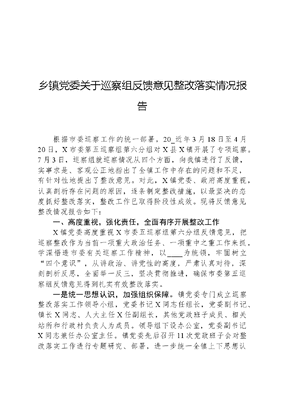乡镇党委关于巡察组反馈意见整改落实情况报告.docx