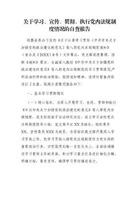 关于学习、宣传、贯彻、执行党内法规制度情况的自查报告.docx