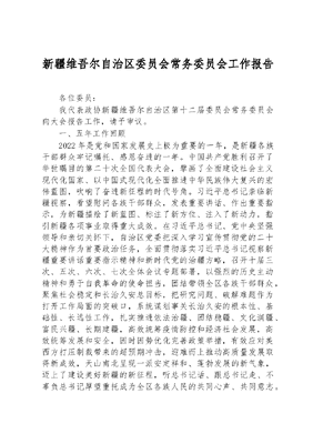 新疆维吾尔自治区委员会常务委员会工作报告.docx