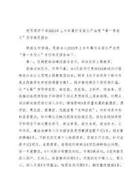 党员领导干部2023年上半年履行全面从严治党“第一责任人”责任情况报告.docx