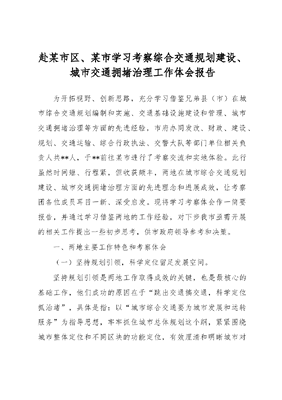 赴某市区、某市学习考察综合交通规划建设、城市交通拥堵治理工作体会报告.docx