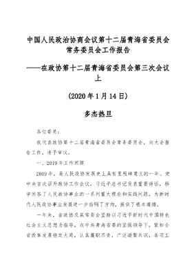 中国人民政治协商会议第十二届青海省委员会常务委员会工作报告.docx
