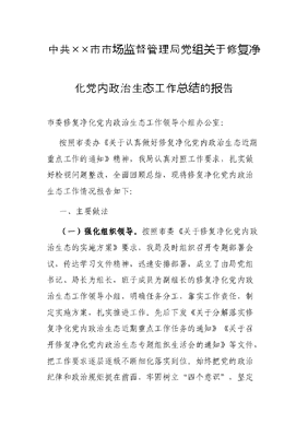 中共××市市场监督管理局党组关于修复净化党内政治生态工作总结的报告.docx