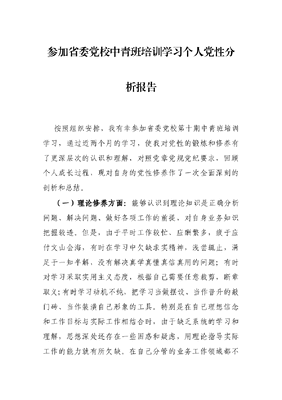 参加省委党校中青班培训学习个人党性分析报告.docx