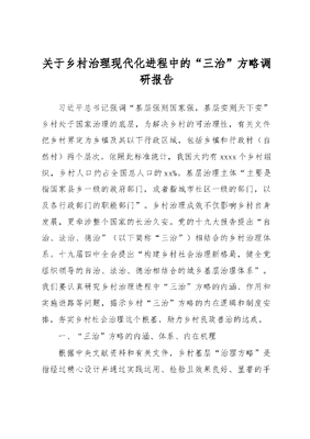 关于乡村治理现代化进程中的“三治”方略调研报告.docx