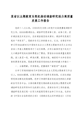 某省以主题教育为契机推动调查研究助力高质量发展工作报告.docx