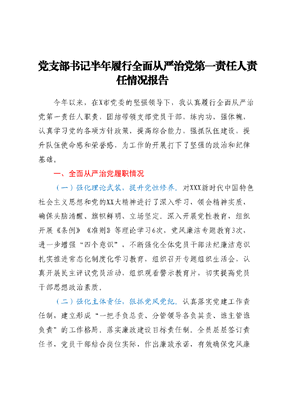 党支部书记半年履行全面从严治党第一责任人责任情况报告.docx