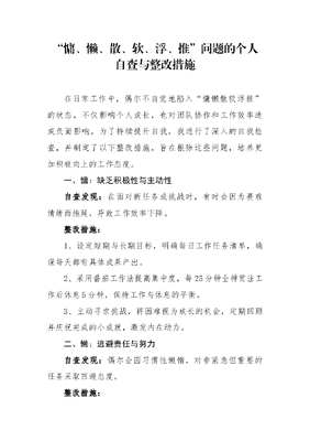 (原创首发)“慵、懒、散、软、浮、推”问题的个人自查与整改措施.docx