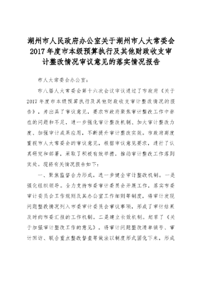 湖州市人民政府办公室关于湖州市人大常委会2017年度市本级预算执行及其他财政收支审计整改情况审议意见的落实情况报告.docx