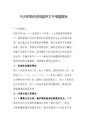 向巡察组的纪检监察工作专题报告.docx