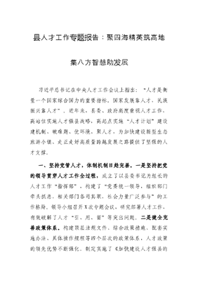 县人才工作专题报告:聚四海精英筑高地 集八方智慧助发展.docx