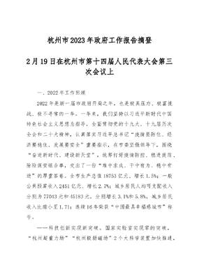 杭州市2023年政府工作报告(摘录).docx