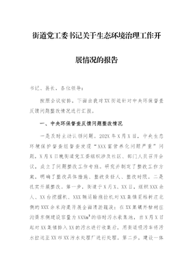 街道党工委书生态环境治理工作开展情况的报告.docx