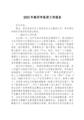 2023年泰州市政府工作报告.docx