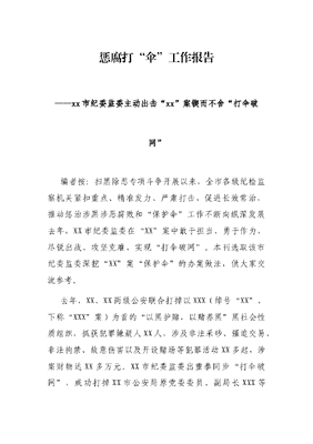 惩腐打“伞”工作报告——xx市纪委监委主动出击“xx”案锲而不舍“打伞破网”.docx