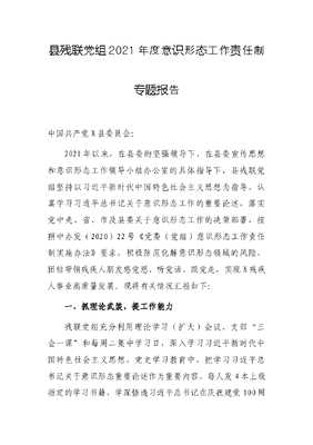 县残联党组2021年度意识形态工作责任制专题报告.docx