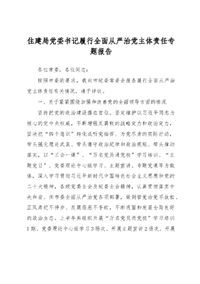 住建局党委书记履行全面从严治党主体责任专题报告.docx