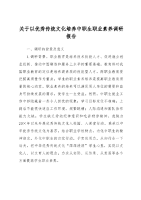 关于以优秀传统文化培养中职生职业素养调研报告.docx
