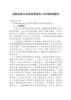 县推动重大决策部署落实工作的情况报告.docx