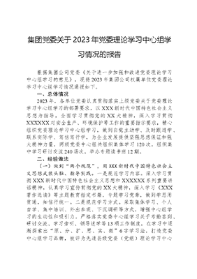 集团党委关于2023年党委理论学习中心组学习情况的报告.docx