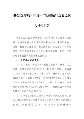 县2022年第一季度一产经济运行及农民收入情况报告.docx