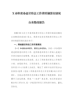 X市扶贫办意识形态工作责任制落实情况自查整改报告.docx