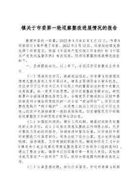 镇关于市委第一轮巡察整改进展情况的报告.docx