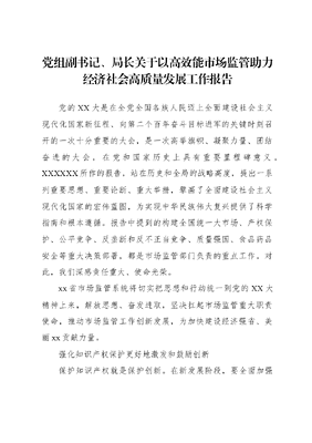党组副书记、局长关于以高效能市场监管助力经济社会高质量发展工作报告.docx